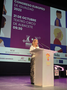 Albacete, 21 de octubre de 2022. Desde el Observatorio Provincial de Igualdad en las Relaciones Laborales, OPI Albacete, constituido por los agentes sociales FEDA, CCOO y UGT y, en colaboración con la Junta de Comunidades de Castilla-La Mancha, la Diputación Provincial, el Ayuntamiento de Albacete desde sus áreas representativas en materia de Igualdad, se ha celebrado este viernes el I Congreso Europeo de Igualdad , en el Teatro Circo de Albacete, inaugurado por el presidente de la Diputación provincial de Albacete, Santiago Cabañero. Con las intervenciones de Blanca Fernández, consejera de Igualdad y portavoz del Gobierno de Castilla-La Mancha; y Emilio Sáez, alcalde de Albacete.