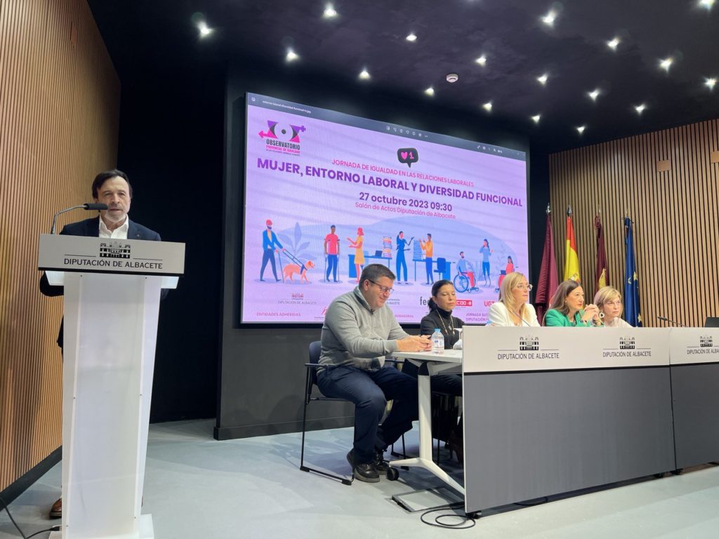 El Observatorio Provincial de Igualdad en las Relaciones Laborales, constituido por los agentes sociales CCOO, UGT y FEDA en colaboración con la Junta de Comunidades de Castilla-La Mancha, la Diputación Provincial y el Ayuntamiento de Albacete desde sus respectivas áreas de igualdad, sumando con sus entidades adheridas, el Instituto de La Mujer de Castilla-La Mancha y el Ayuntamiento de Hellín, ha organizado este viernes una nueva jornada formativa bajo el título ‘Mujer, entorno laboral y diversidad funcional’.